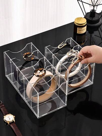 1 pieza Organizador de cinturón/cadena/corbata/diadema transparente de varios tamaños, ensamblaje desmontable, adecuado para el almacenamiento del armario diario, cajones del tocador, organización de joyas y accesorios, caja de almacenamiento multifuncional - Multicolor - Añade 2
