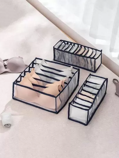 1/2/3 piezas Bolsas organizadoras de armario para ropa interior, calcetines y otros artículos pequeños - Negro - Añade 3