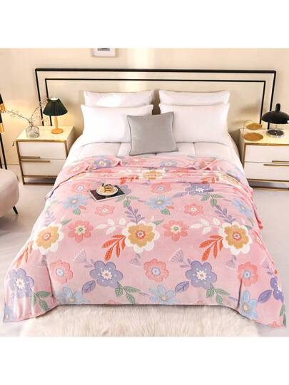 1 pieza Manta con estampado floral multicolor, apta para dormitorio, sofá, todo el año - Rosado Sandía - Añade 1