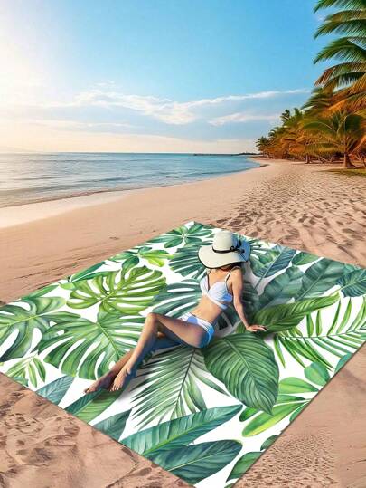 1 pieza Manta de playa estilo tropical rectangular, nueva, ligera, de uso múltiple, impermeable, a prueba de arena, esencial para picnic en oasis tropical - Multicolor - Añade 5