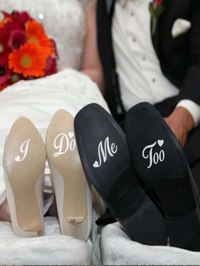 1 pieza Adhesivo de decoración de bodas 'Yo sí/yo también - Recién casados - Novia/Novio' - Blanco - Añade 6