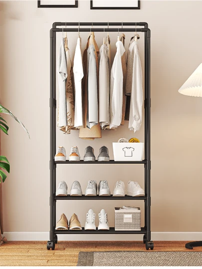 1 pieza Estante de almacenamiento para colgar ropa liso - Negro - Añade 3