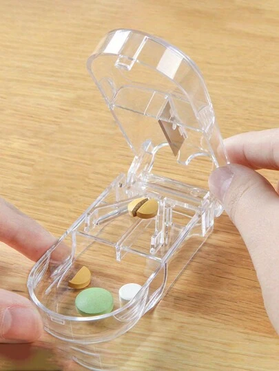 1 pieza Cortador de pastillas portátil y caja de almacenamiento para vitaminas y suplementos de aceite de pescado - Multicolor - Añade 1