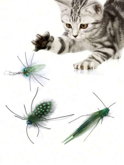 1 pieza Juguete interactivo para gatos con insecto realista, Reemplazo de cabezal para varita estimulante para gatos, Juguete de plumas con insecto simulado, Apto para juego y ejercicio en interiores - Multicolor - Añade 3