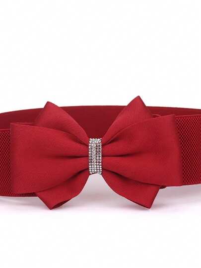 1 pieza Vestido rojo con lazo elástico en la cintura y decorado con rhinestones - Rojo - Añade 2