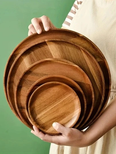 1 pieza Bandeja redondo de madera - Marrón - Añade 1