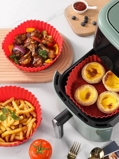 1 pieza Bandeja de silicona para freidora de aire, forro de freidora de aire para cocina, papel de freidora de aire, freidora de aire - Rojo - Añade 2