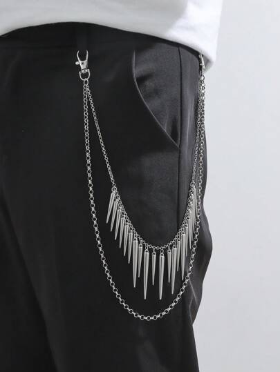 1 Pieza Accesorio De Doble Cono De Metal Plateado Para Hombres Con Cadena De Pantalones De Utilidad - Plateado - Añade 3