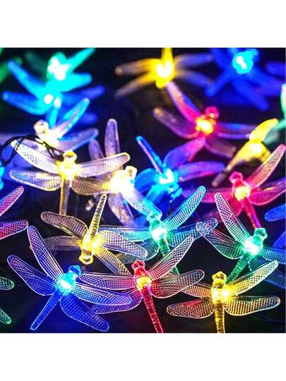 1 pieza Luces de cadena con libélula alimentada por energía solar, 8 modos de iluminación, luces de hadas resistentes al agua para árbol, patio, cerca, decoración navideña (multicolor) - Multicolor - Añade 1