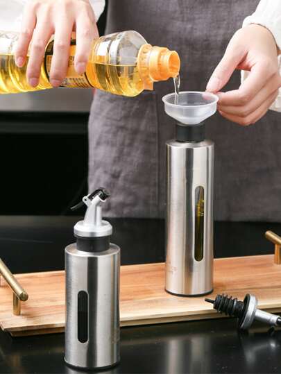 1 pieza de acero inoxidable Aceite Dispensador - Plateado - Añade 6