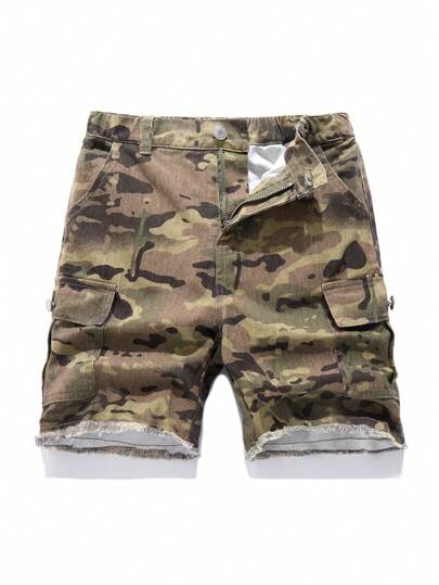 1 pieza Pantalón cargo de niño preadolescente de mezclilla camuflaje con bolsillos - Multicolor - Añade 7