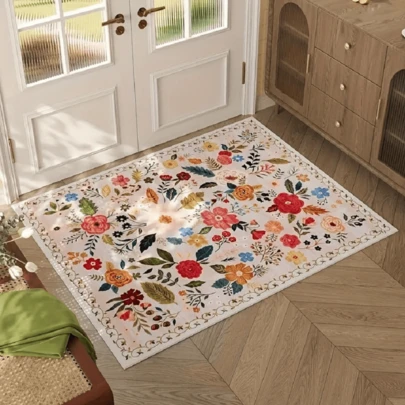 1 pieza Alfombra de entrada con patrón floral bohemio vibrante - Alfombra para sala de estar, dormitorio, diseño de bajo perfil con respaldo de goma para un agarre mejorado, apta para cocina, sala de estar, dormitorio y puerta principal, fácil de limpiar y mantener - Multicolor - Añade 20