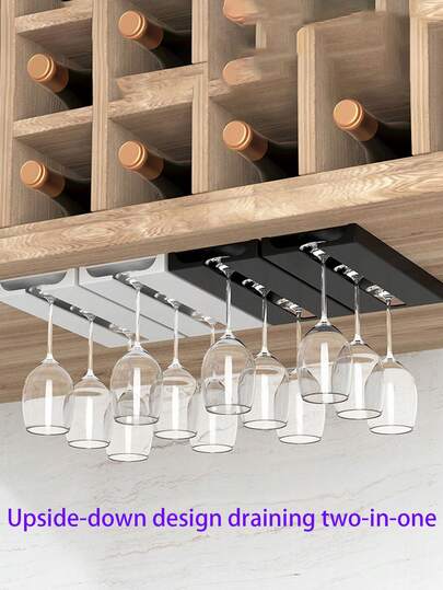 1 Pieza Porta Copas De Vino Colgante, Soporte De Cristalería Sin Perforación Para La Cocina - Negro - Añade 1