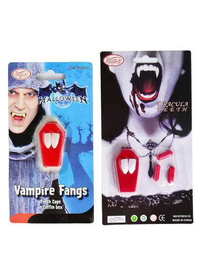1 cápsula de sangre Zombie para dientes falsos, colmillos cortos y afilados, juguete de dientes de vampiro - multicolor - Añade 2