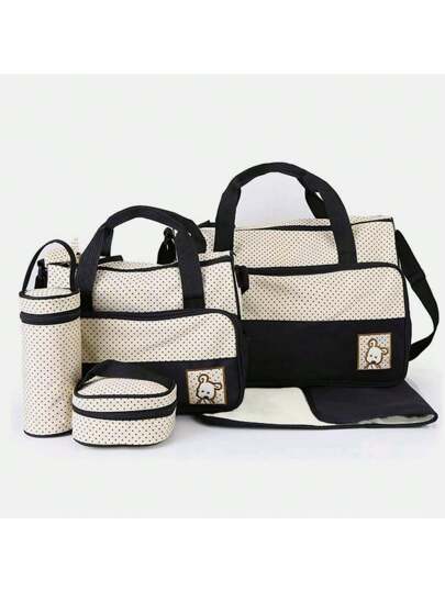 1 set Bebé con estampado de lunares poliéster Bolsa de pañales & chupete Bolso - Negro - Añade 4