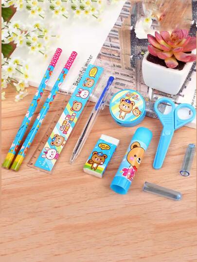 1 set Papelería con estampado de dibujos animados - Azul - Añade 2