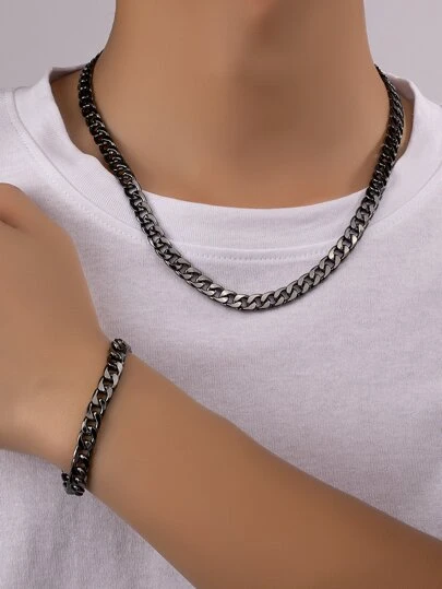 1 set grueso Collar de cadena con Pulsera - Negro de pistola - Añade 1
