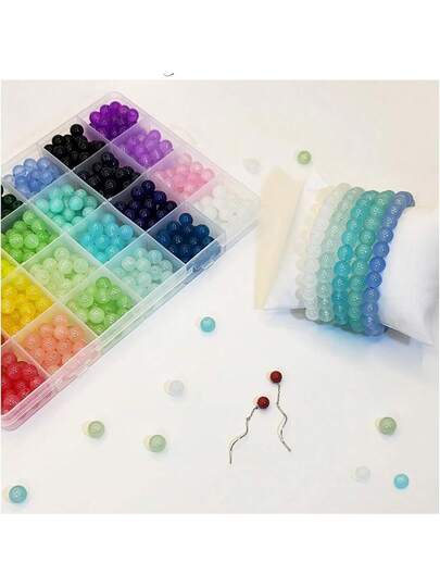 2 cajas/set de cuentas de vidrio para hacer joyas, 24 colores de cuentas de cristal de 8 mm, kit para hacer pulseras, 2 cajas de set de cuentas redondas adecuadas para principiantes - Multicolor - Añade 15