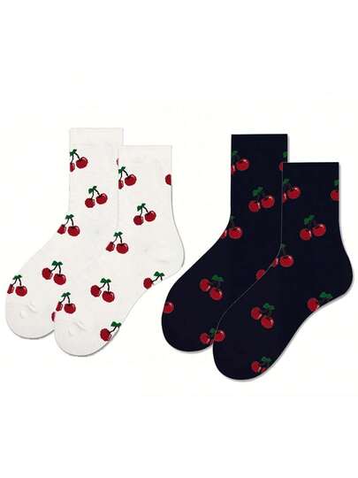 2 pares de calcetines unisex de alta calidad con divertido diseño de cereza, cómodos y suaves - Multicolor - Añade 1