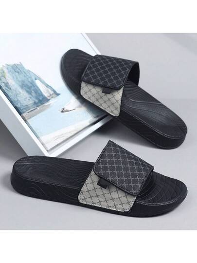 Sandalias de lujo para hombre con estampado de rombos, verano 2024 - Negro - Añade 1