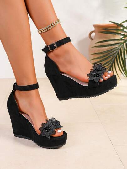 Sandalias impermeables con plataforma de cuña y correa, verano 2025 - Negro - Añade 3
