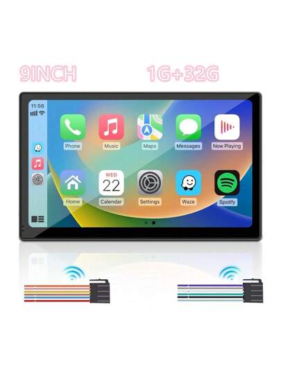 2025, visualización portátil inalámbrica CarPlay para coche, visualización de reproducción de coche de 9 pulgadas, compatible con Android Auto y Apple CarPlay, reproductor multimedia, - Negro - Añade 1