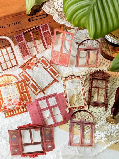 paquete de 20 pegatinas de PET con diseño de puerta/ventana de madera desgastada, materiales DIY de decoración - Multicolor - Añade 4