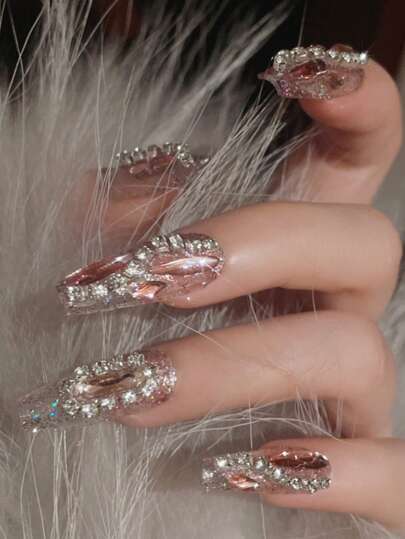 24 piezas de decoraciones para uñas en forma de gota de agua con diamantes de imitación rosa brillante, cadena mediana, uñas postizas, suministros para uñas - Multicolor - Añade 2