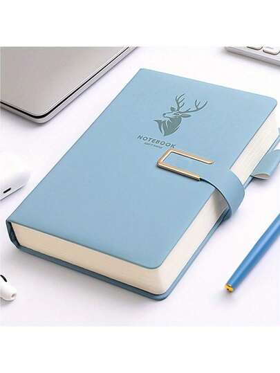 Libreta De Notas A5 De PU De 260 Páginas Con Hebilla, Adecuada Para Hogar, Oficina Y Estudio - Azul - Añade 1