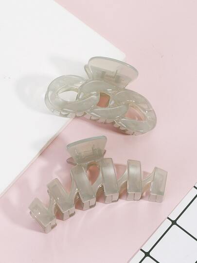 2 piezas Garra de pelo con cadena & onda - Gris - Añade 2
