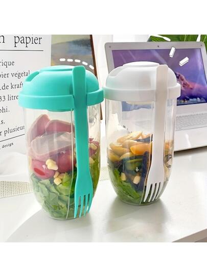 Set de taza y tenedor para ensalada, taza coctelera para ensalada, recipiente para ensalada saludable de material PP, taza para ensalada para desayuno, almuerzo campestre, utensilios de cocina, taza para ensalada para fiesta y fecha - Verde - Añade 1