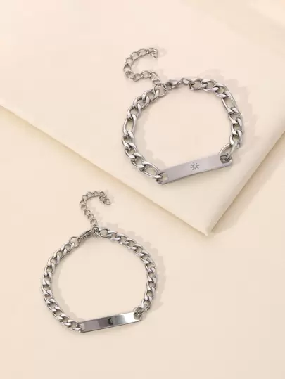 2 piezas Pulseras para parejas con detalles de sol y luna de acero inoxidable - Plateado - Añade 1