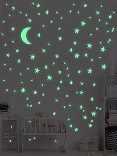 2 piezas Adhesivo fluorescente luna & en forma de estrella - Verde - Añade 4