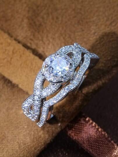 2 Piezas Anillos De Amantes De Bodas De Estrás - Plateado - Añade 1