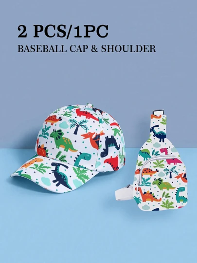 Set de 2 piezas compuesto por gorra de béisbol con estampado de dinosaurio y mochila de dinosaurio para niños, conjunto a juego para uso en exteriores, adecuado como regalo de cumpleaños - Blanco - Añade 2