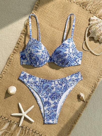 2 piezas/set de bikini con aros estampados, moda de baño para primavera/verano - Multicolor - Añade 5