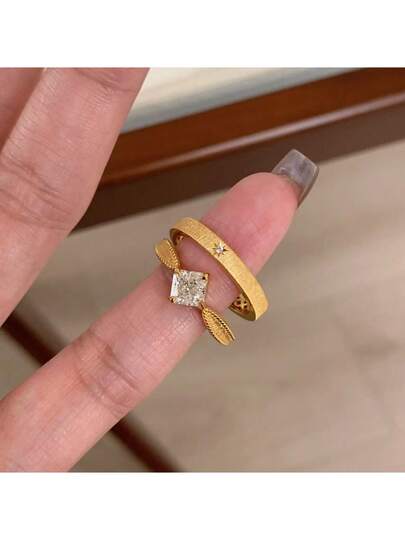 2 piezas Anillos pequeños cuadrados de acero inoxidable con estallido de strass para mujeres, diseño de lujo delicado, versátil para uso diario o como regalo - Juego de anillos de 2 piezas - Añade 1