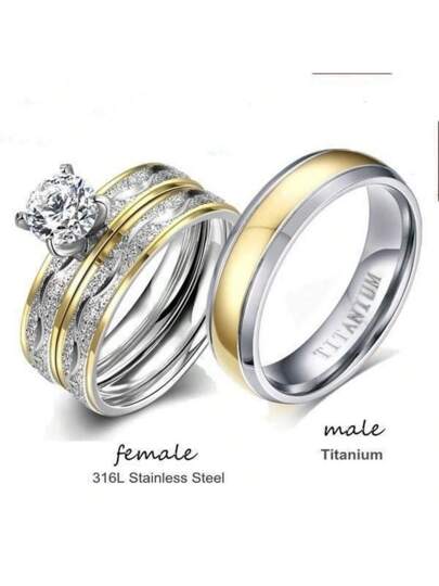 1 pieza de joyería de moda para él y para ella, Set de anillos de bodas para mujeres (2 piezas, incluido el anillo de bodas de acero de titanio y el anillo de bodas de titanio para hombres) - 女士 戒指 - Añade 3