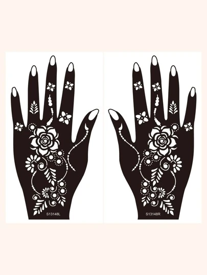 2 hojas Plantilla de tatuaje con estampado de flor - Negro - Añade 1