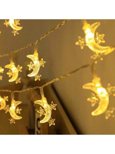 3 metros/20 LED o 10 m/100 LED Luces de cadena LED alimentadas por batería, luces de decoración de estrellas y luna para días festivos - Amarillo - Añade 1