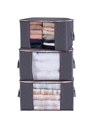 3 Unidades Organizador De Bolsas De Almacenamiento De Ropa - Gris Oscuro - Añade 1