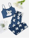 Conjunto de pijama con estampado de oso y ribete de lechuga