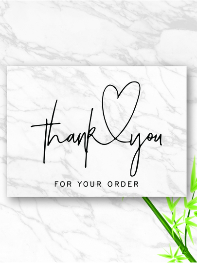 30 piezas Tarjeta de agradecimiento con estampado de slogan con patrón de mármol - Blanco y Negro - Añade 1