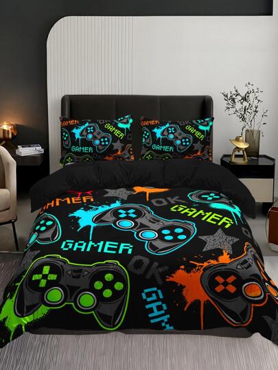 3 piezas con mando de juego patrón Set colcha sin moderno de tela Textiles para dormitorio para casa - Multicolor - Añade 3