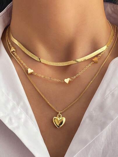 Set de 3 collares con colgante de corazón de múltiples capas - conjunto de collar - Añade 2
