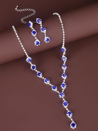 3 piezas set de joyería con diseño de diamante de imitación - Plateado - Añade 5
