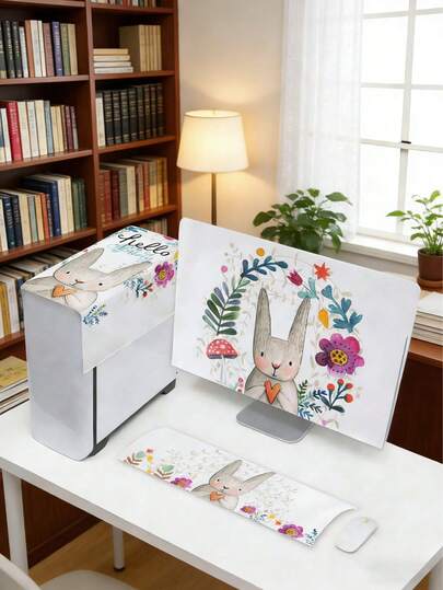 Set de 3 fundas protectoras de computadora de escritorio con diseño de conejito de Pascua - Funda protectora de CPU, funda protectora de teclado; adecuada para dormitorio, mudanza, almacenamiento, fiesta de vacaciones, uso diario en el hogar, tamaño universal, tela a prueba de polvo, funda protectora de computadora. - Multicolor - Añade 4