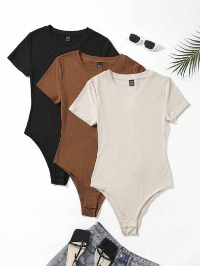 SHEIN Unity 3 piezas Body unicolor tejido de canalé - Multicolor - Añade 1