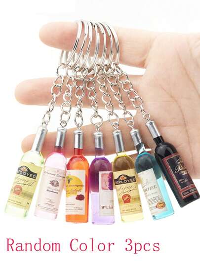 Llavero informal con diseño de botella de vino de 3 piezas - Multicolor - Añade 1