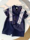 SHEIN Conjunto De 2 Piezas Para Bebé, Mameluco De Manga Corta Con Cuello Para Niño Y Sombrero A Juego